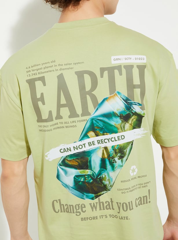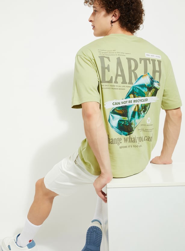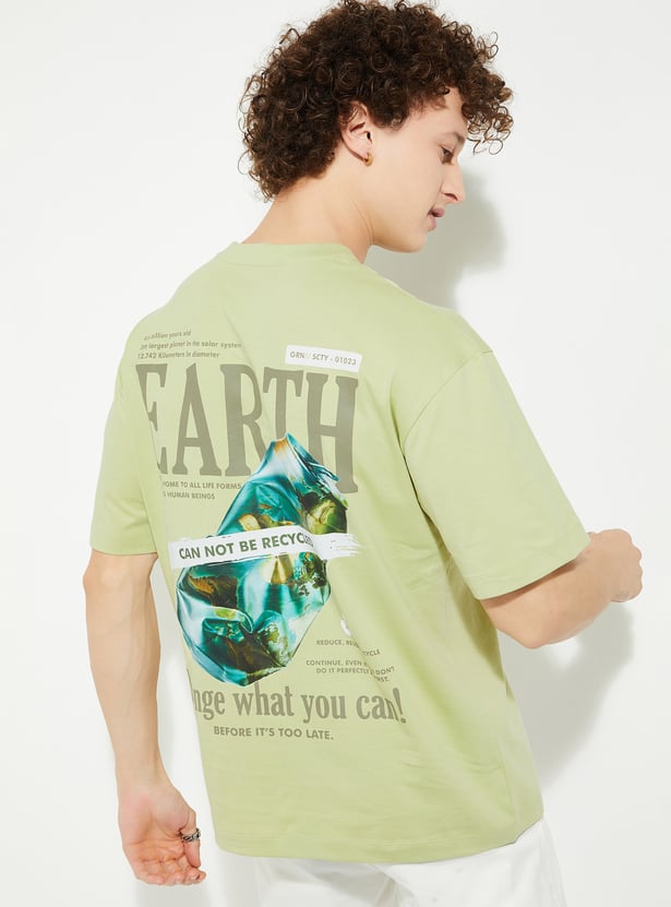 Make a bold statement with this oversized back graphic print t-shirt. Featuring a classic crew neck and half sleeves, it offers a relaxed fit with a striking graphic on the back that adds a unique touch to your outfit.