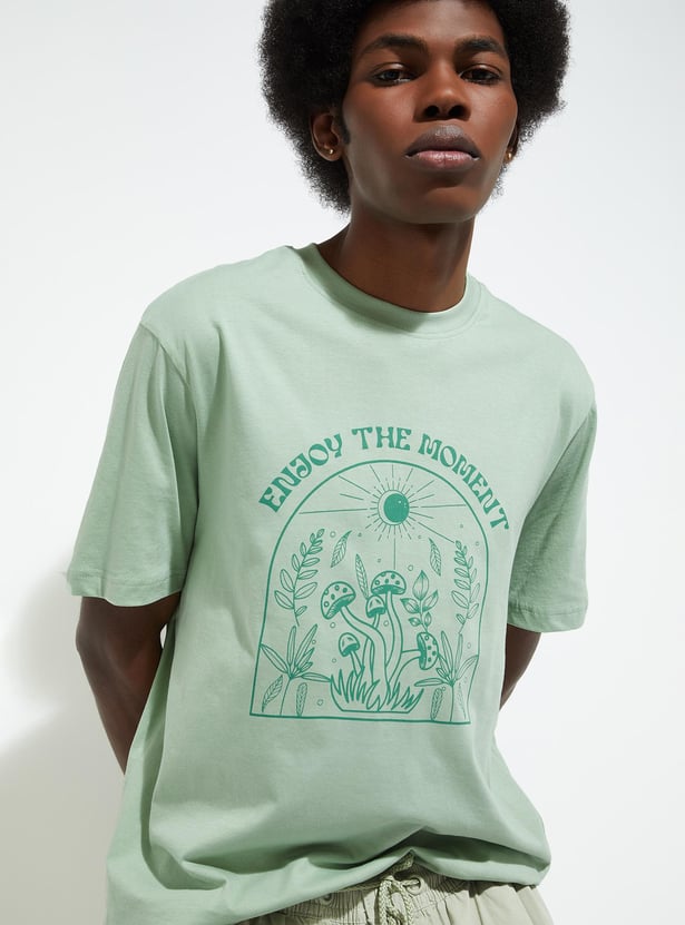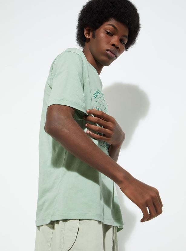 A must-have for your casual wardrobe, this T-shirt features a graphic print on the chest. With a crew neck, short sleeves, and a straight hem, it offers a regular fit profile for roomy comfort. Perfect for effortless urban style.