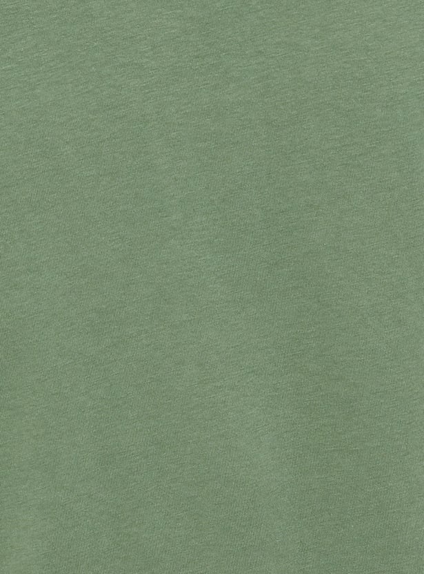 This T-shirt offers a stylish and casual look. Featuring a solid design, it adds a trendy touch to your wardrobe. The crew neck and half sleeves provide a comfortable fit. Detailed with striped shoulder accents for a unique appeal.