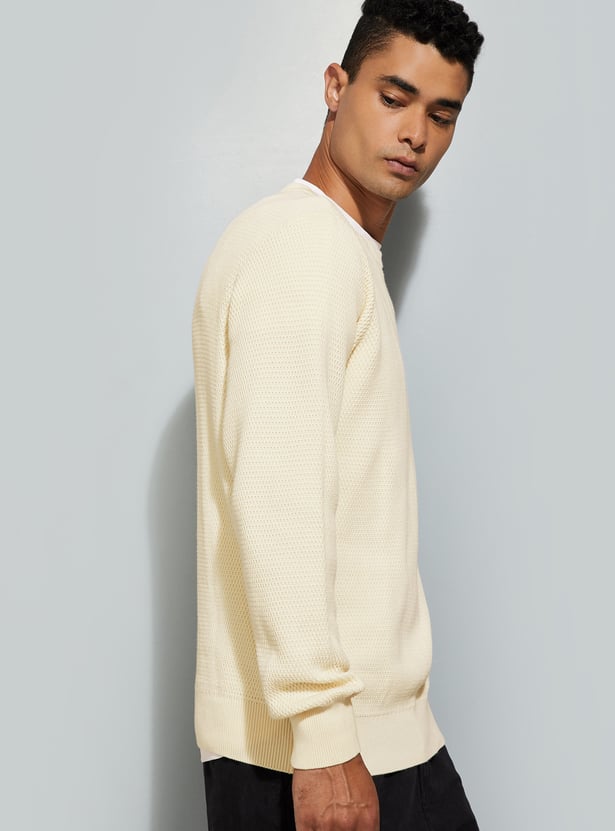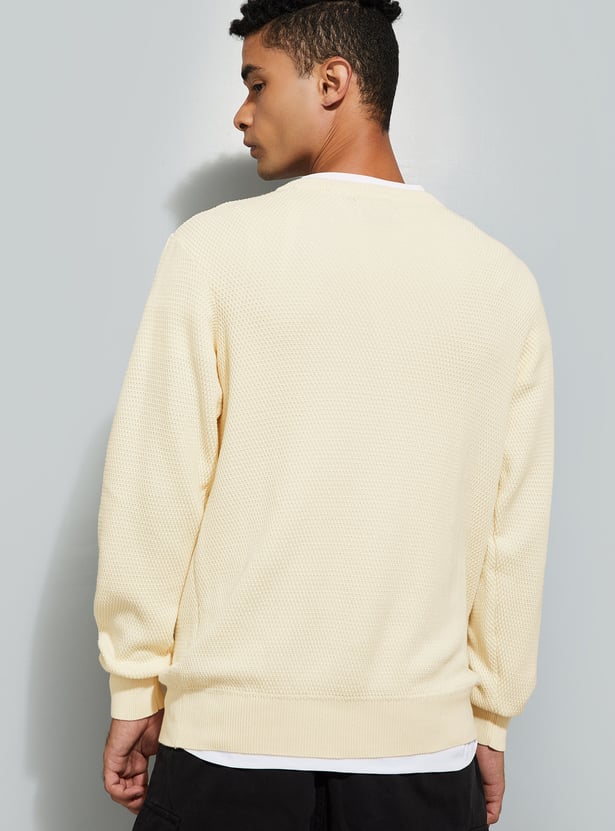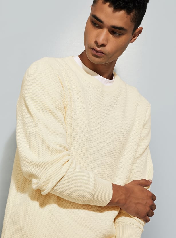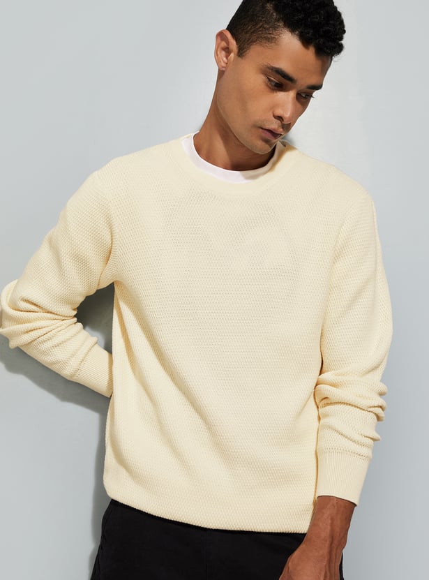 This solid, regular-fit sweater is a classic wardrobe staple. Designed with a crew neck and full sleeves, it offers a clean, versatile look perfect for layering or wearing on its own.
