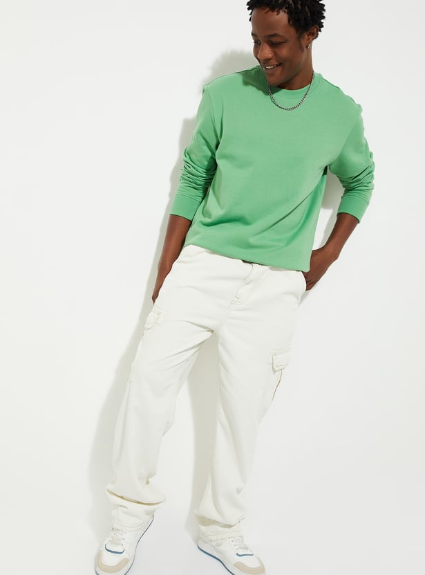Gear up for winter with this sleek, urban sweatshirt. Featuring a classic crew neck, long sleeves, and a solid design, it exudes minimalist style. The ribbed hem adds a snug fit, making it a perfect blend of comfort and street-ready flair.