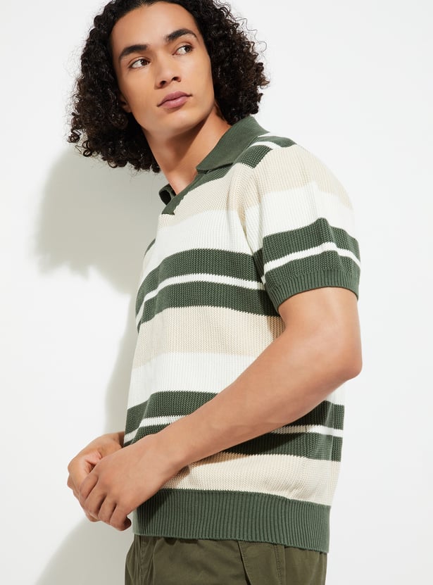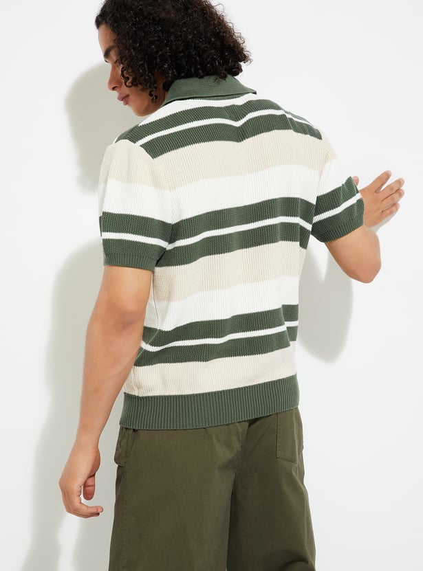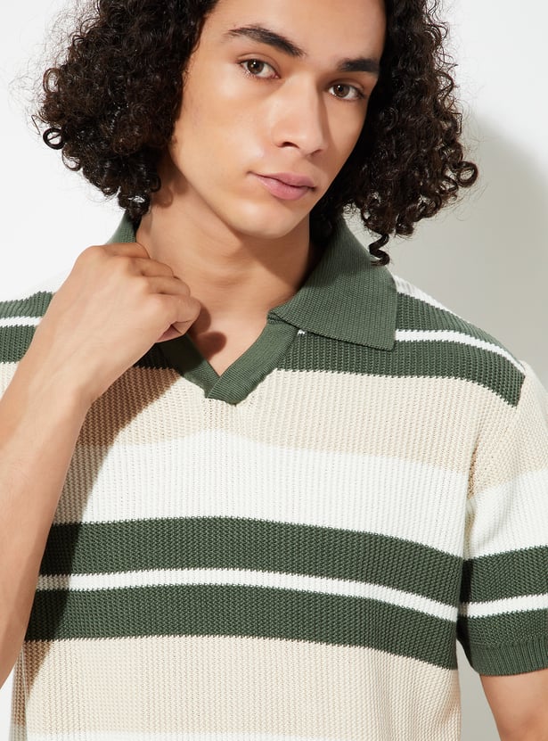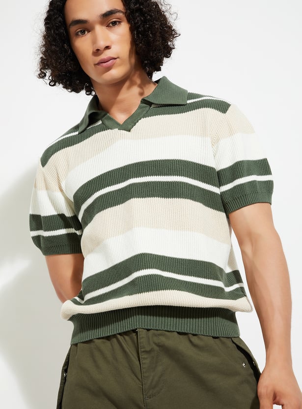 URB_N Men Striped Oversized Polo T-shirt