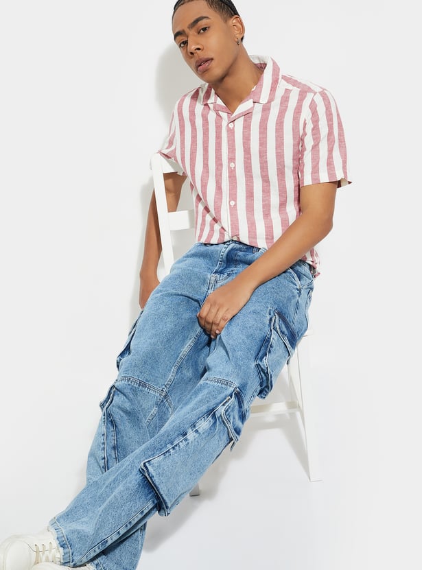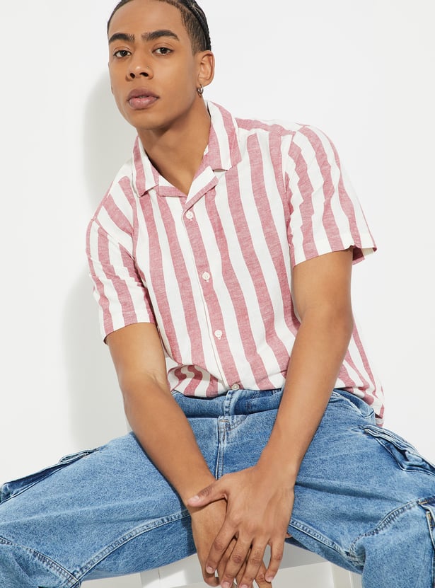 This striped regular-fit shirt is the perfect mix of comfort and style! With its resort collar, half sleeves, and button placket, it offers a laid-back yet polished vibe. The timeless stripes add a touch of fun, making it a versatile piece that’s easy to dress up or down.