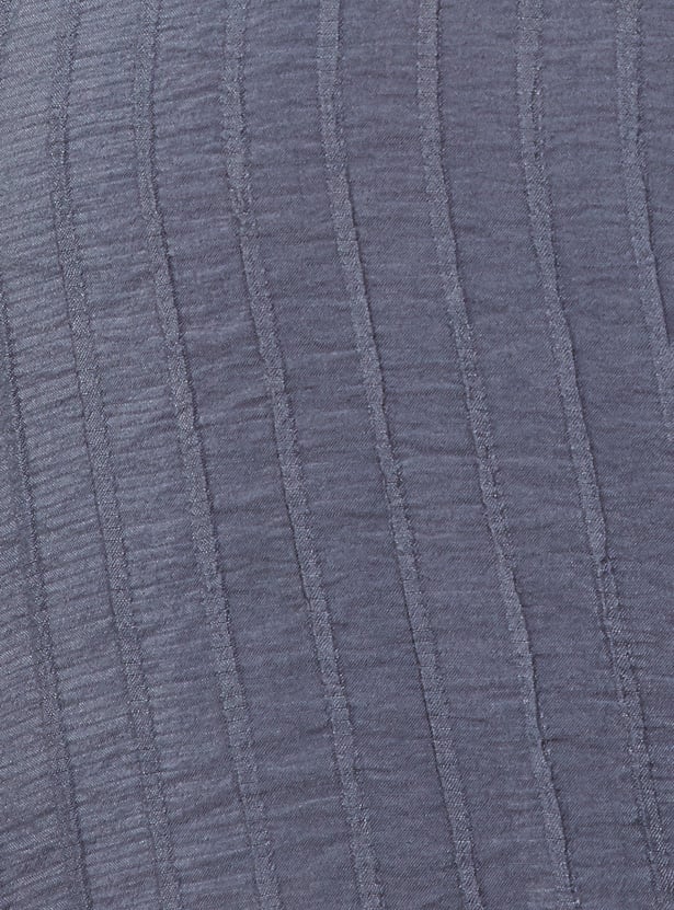 Keep it cool and casual with this textured regular fit resort shirt, featuring a resort collar, button placket, and half sleeves. The textured fabric adds a stylish twist to this relaxed essential.