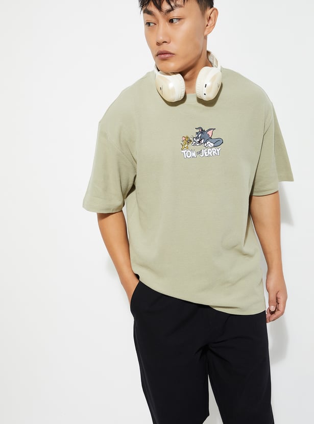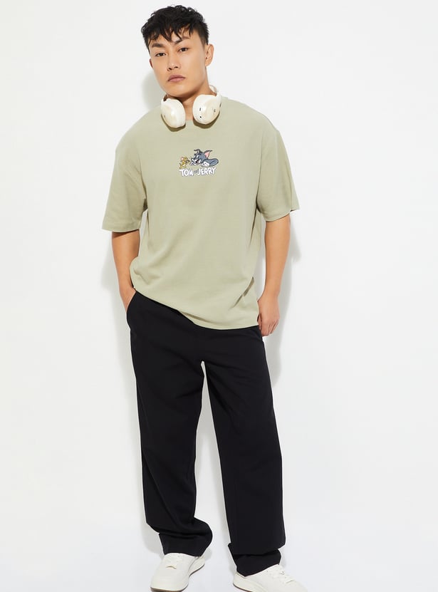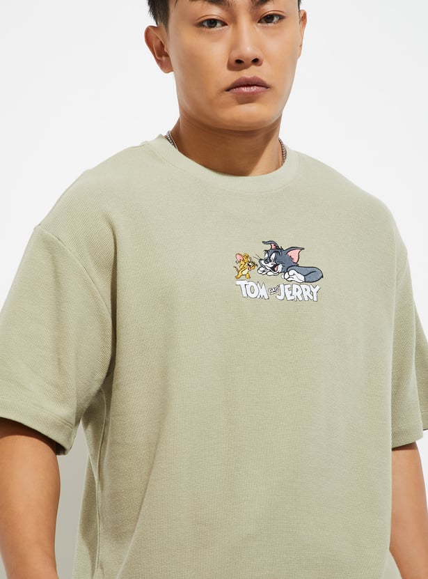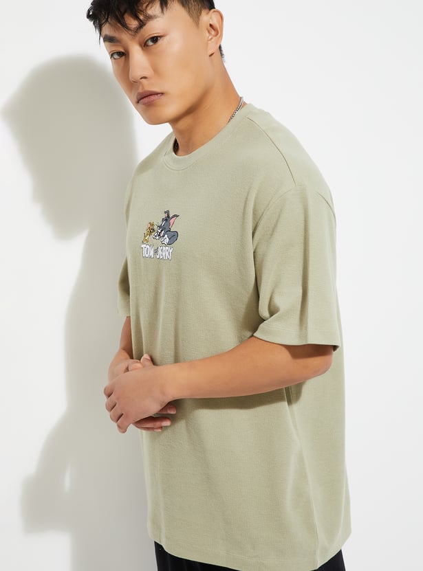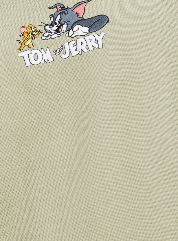This stylish men's T-shirt features a fun Tom & Jerry embroidered design. It has a classic crew-neck and comfortable half sleeves, perfect for casual wear. The intricate embroidery adds a playful detail, making it a versatile and standout piece for your wardrobe.