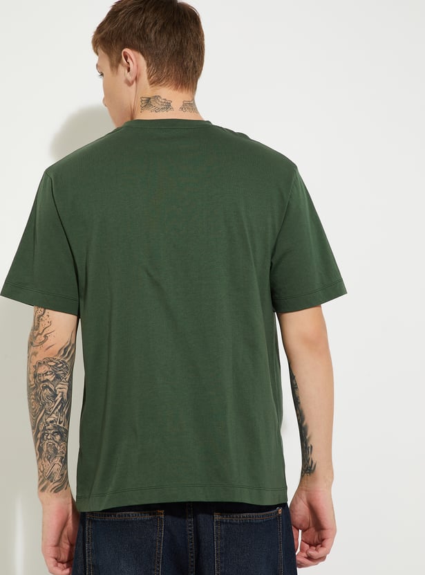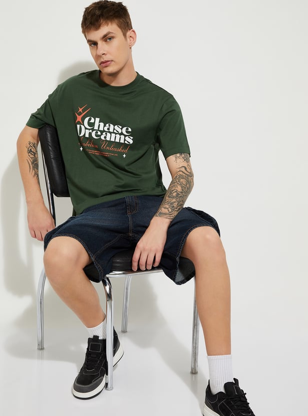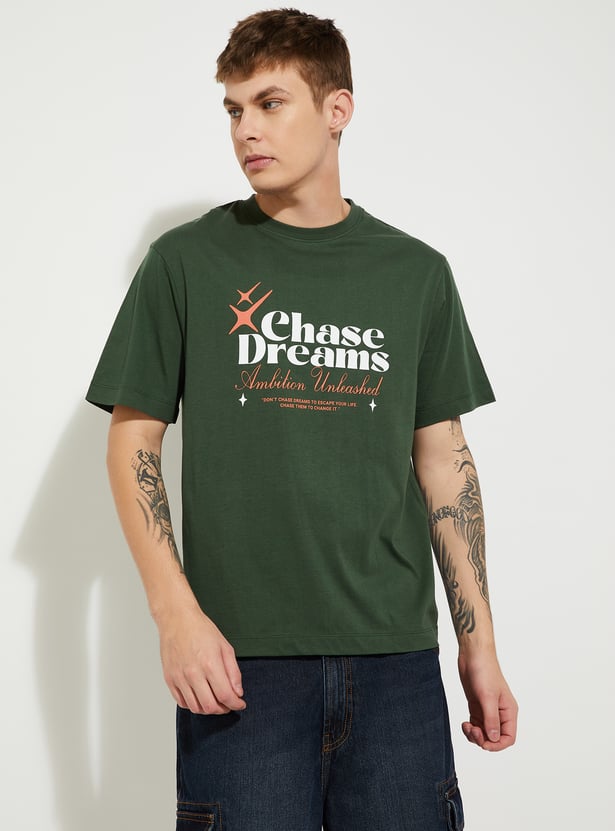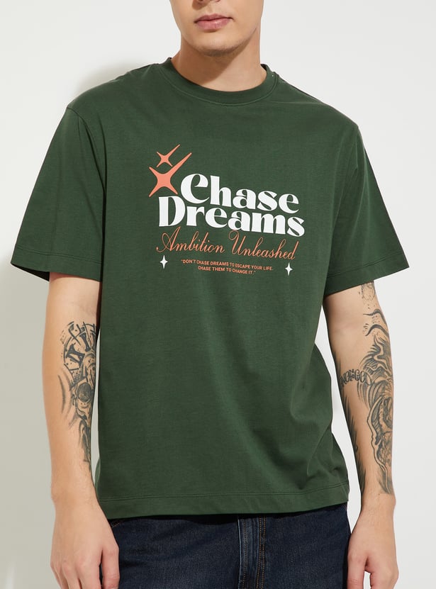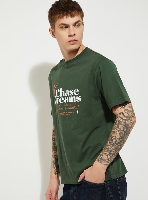 This tee comes with a typographic print, crew neckline and short sleeves.