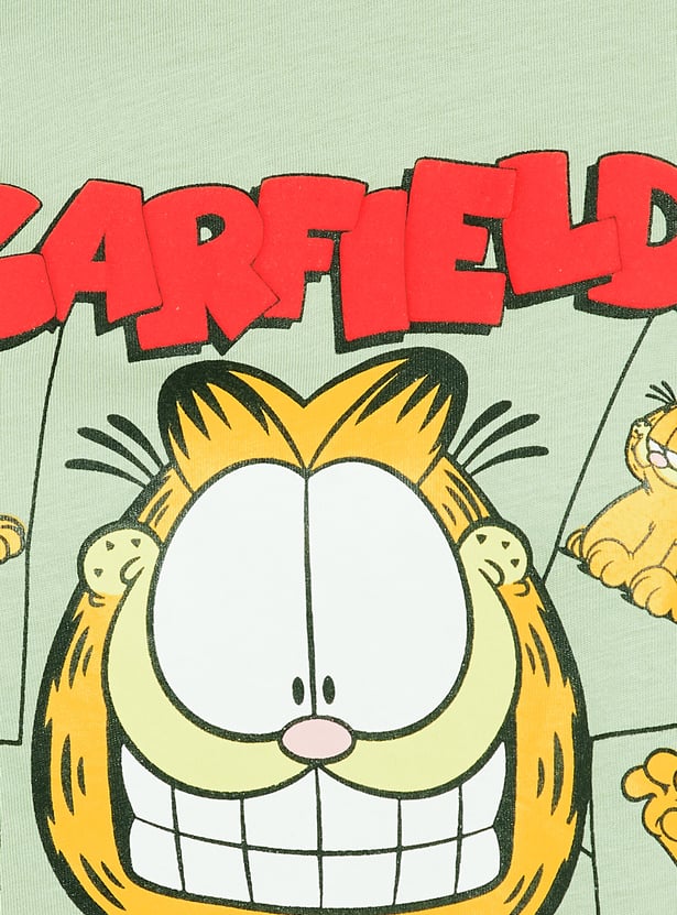 Add a hint of fun to your day with this T-shirt. The Garfield print adds a charming look. It has a boxy fit for roomy comfort and half sleeves for a casual look. Model Size :