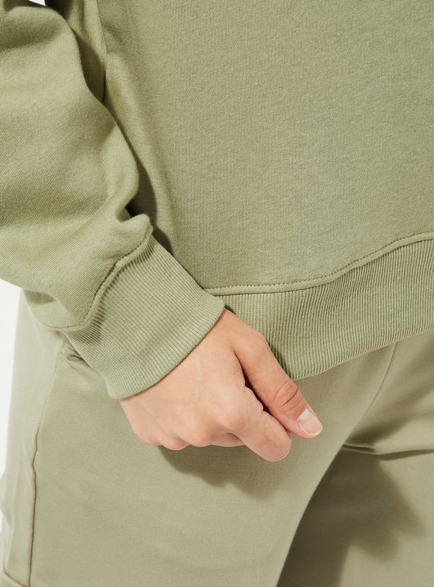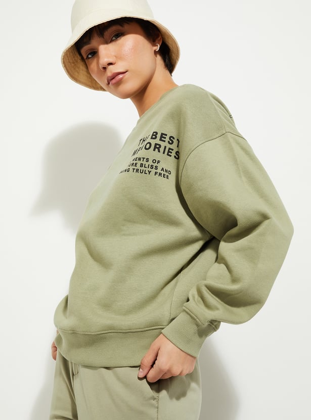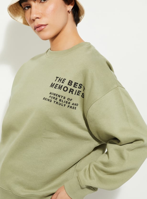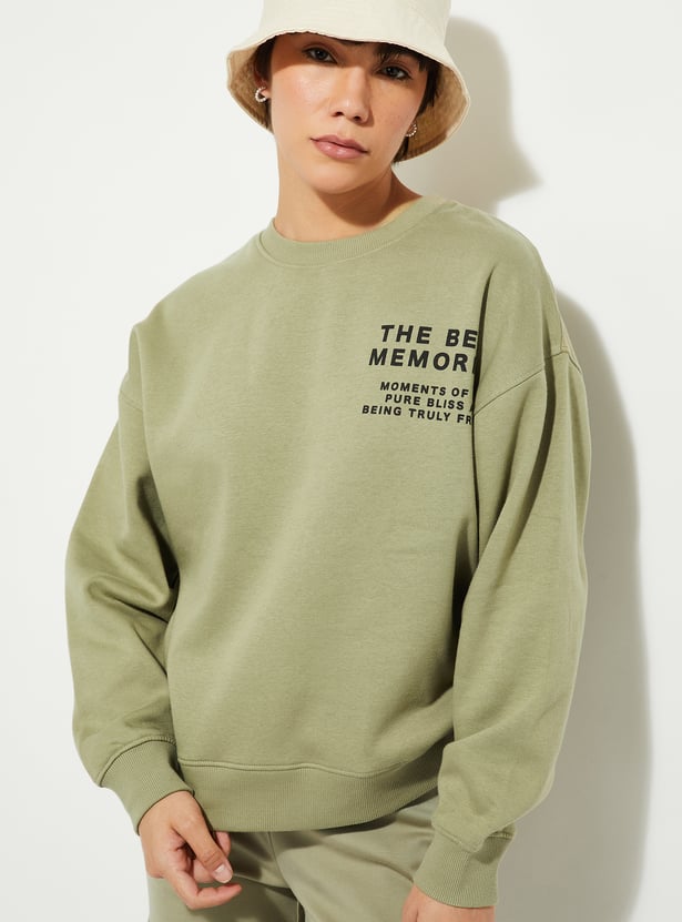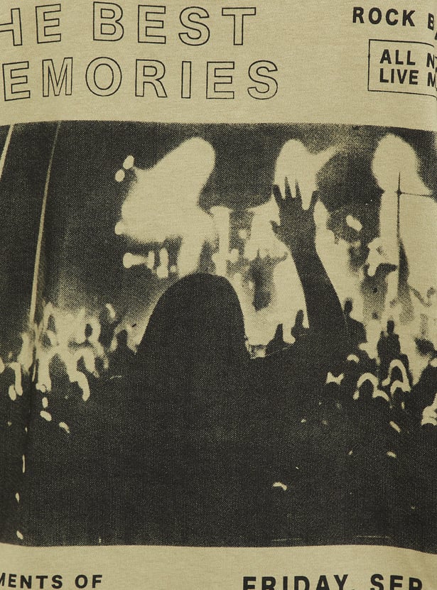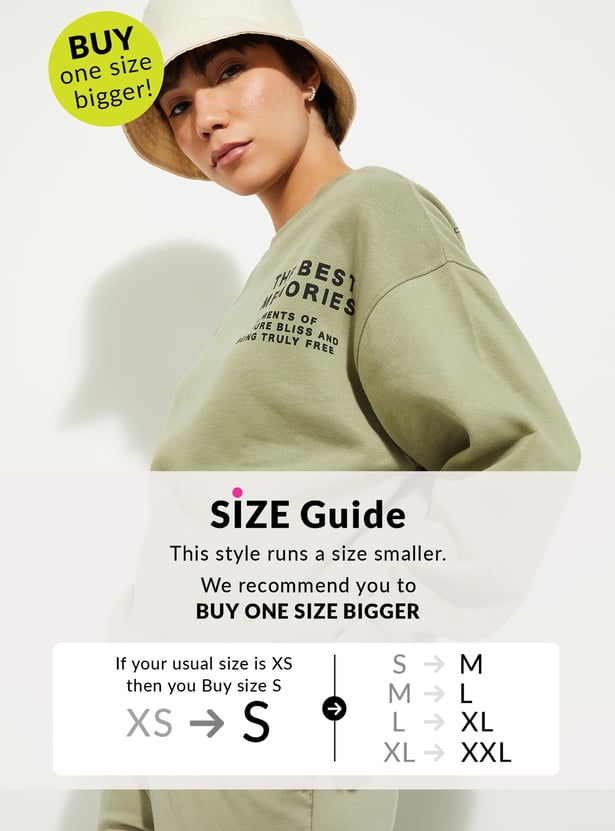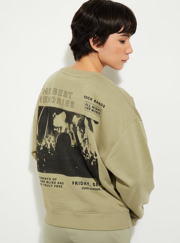 Cosy and comfy, this sweatshirt has got your back and your style. The concert-inspired print at the front and back adds a touch of whimsy, while the oversized fit ensures ultimate comfort. It has a crew neck, drop shoulders, full sleeves, and ribbed trim.