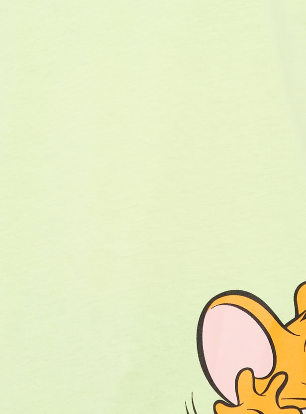 Add a fun touch to your casual wardrobe with this Tom & Jerry oversized fit T-shirt. Designed with a classic round neck and half sleeves, it offers a relaxed silhouette that combines comfort with playful style.