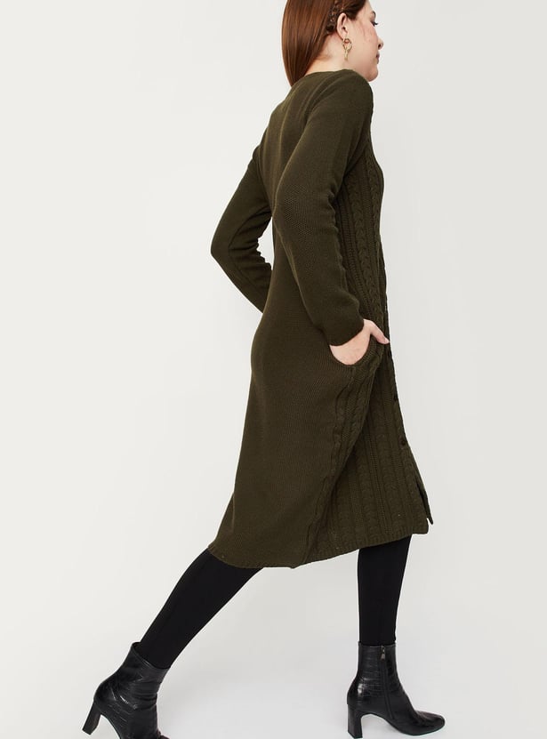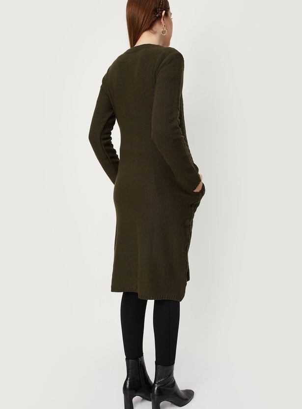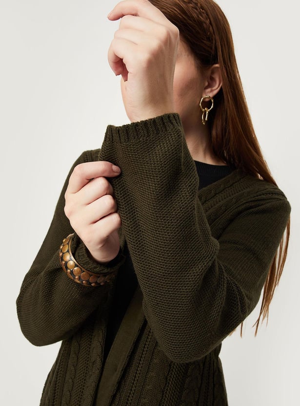 Women Cable Knit Longline Cardigan
