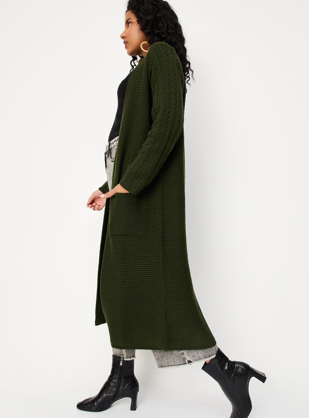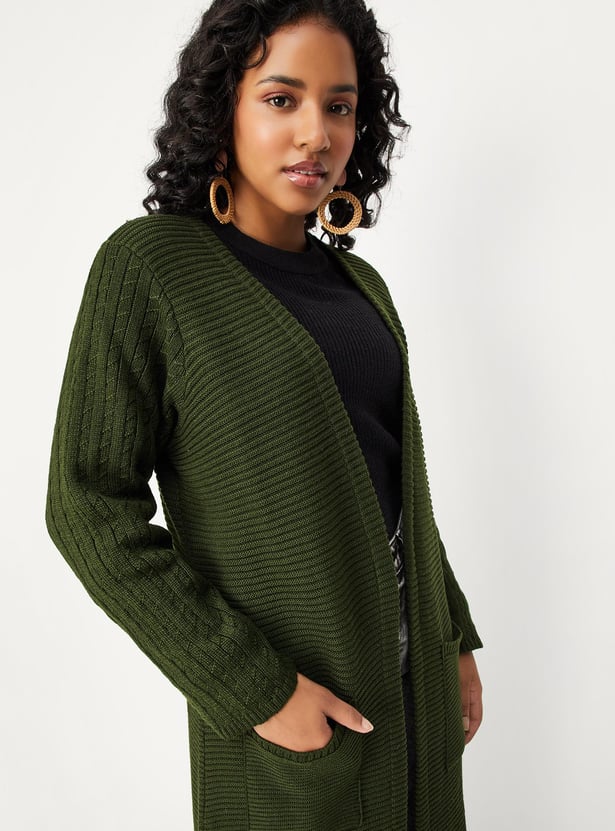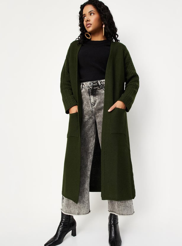 Keep yourself warm and toasty this winter with this knitted shrug which has a front open and long sleeves. Style it with a solid top and a pair of jeans for a stylish yet dapper look.