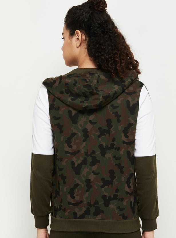 Women Camouflage Print Zip-Front Sports Jacket with Hood