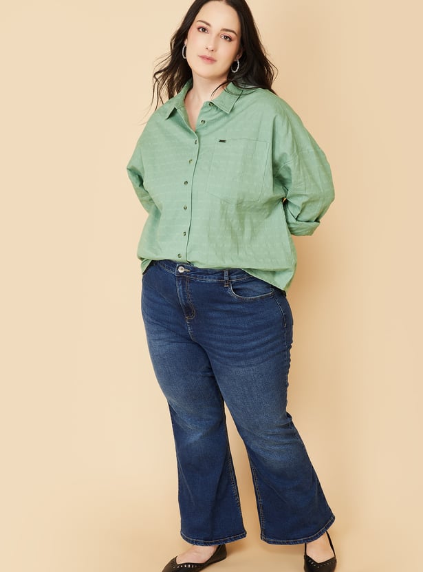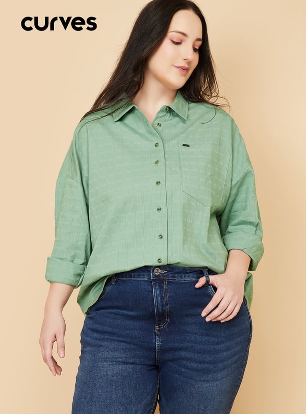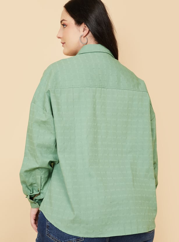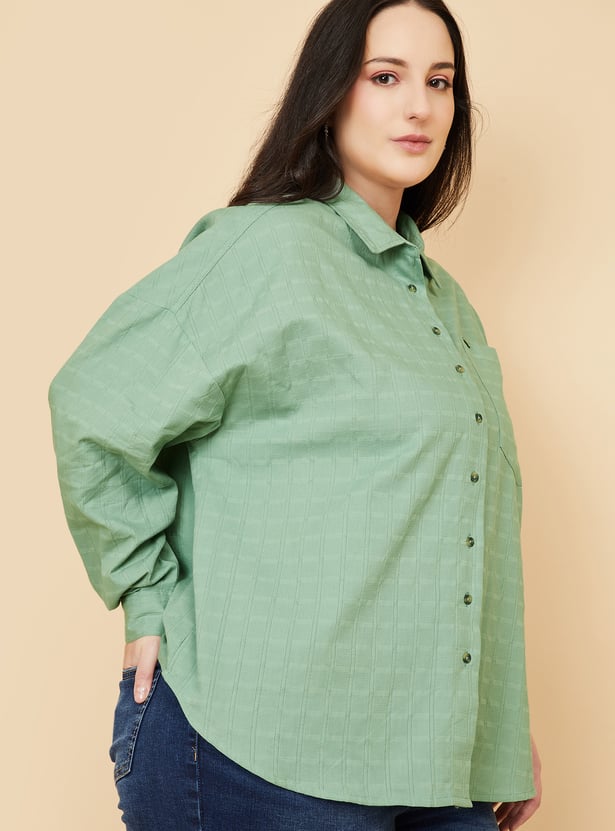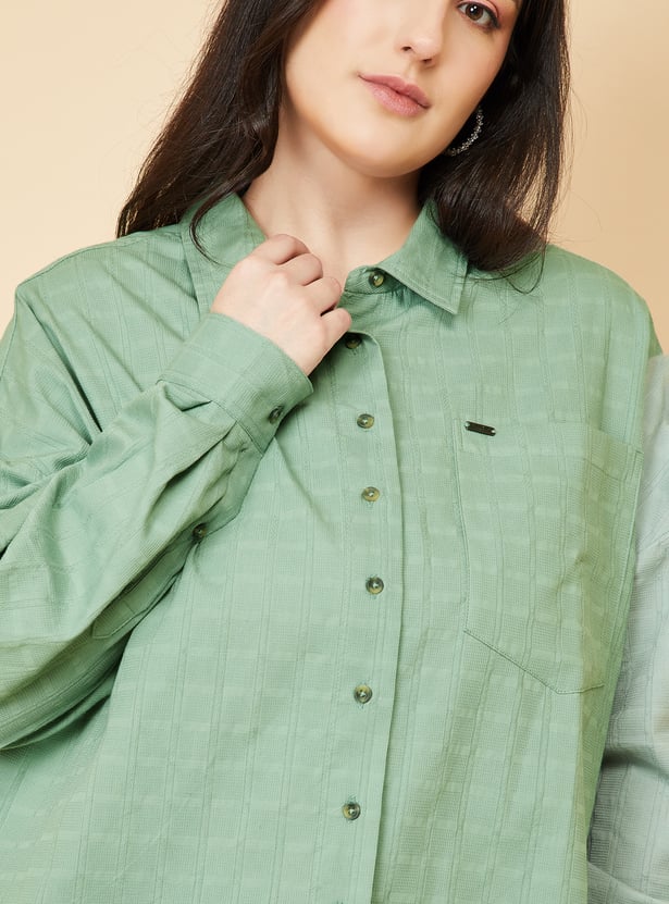 This checked shirt has a spread collar, full sleeves with button cuffs, a button placket, and a curved hem. It is designed in an oversized silhouette for comfort. Model Size :