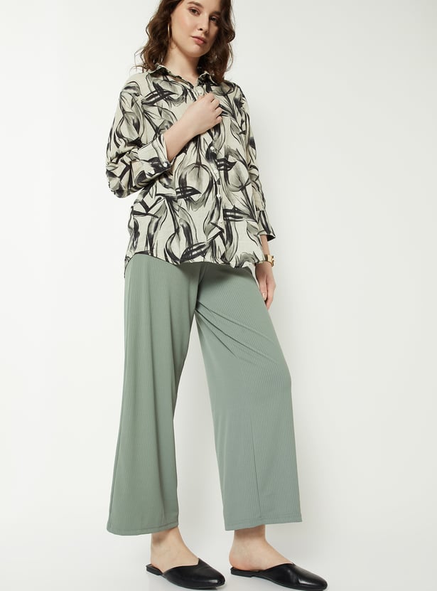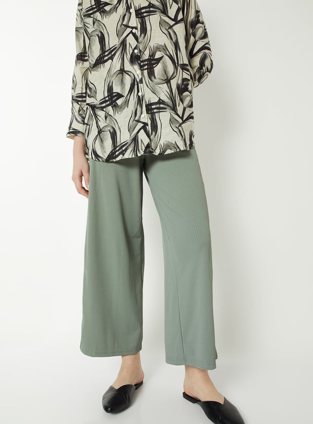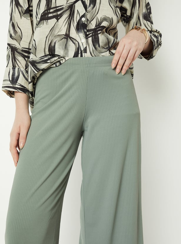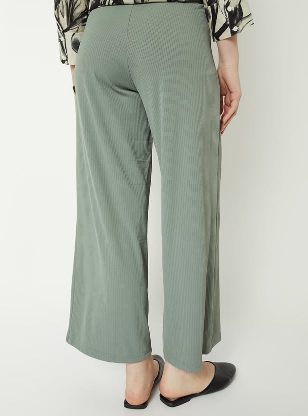 Women Elasticated Front Waist Tie-Up Ribbed Palazzo