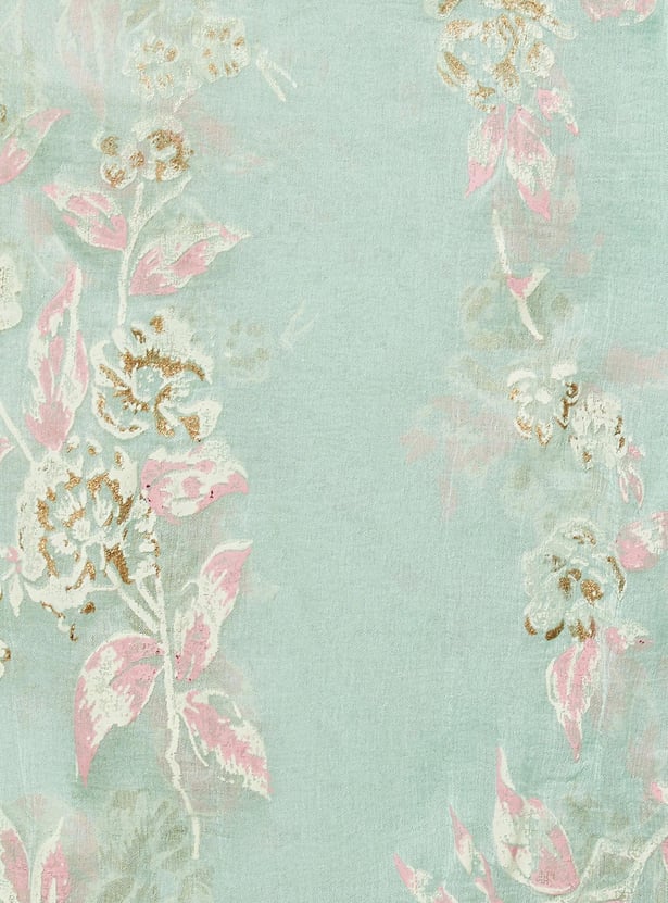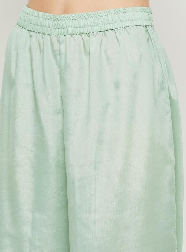 This kurta set is complemented with an embroidered kurta designed with a notch neck, three-quarter sleeves along with a pair of palazzo pants, and a matching dupatta to ensemble the complete look.