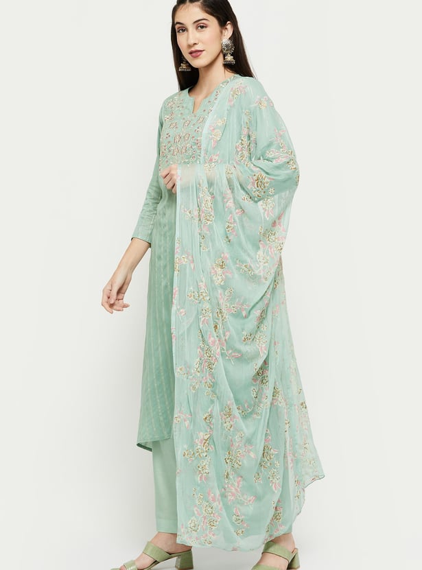 Women Embroidered A-Line Kurta with Palazzos and Dupatta