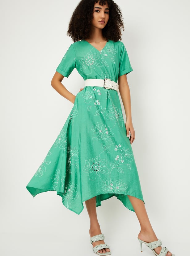 Women Embroidered Asymmetrical Dress