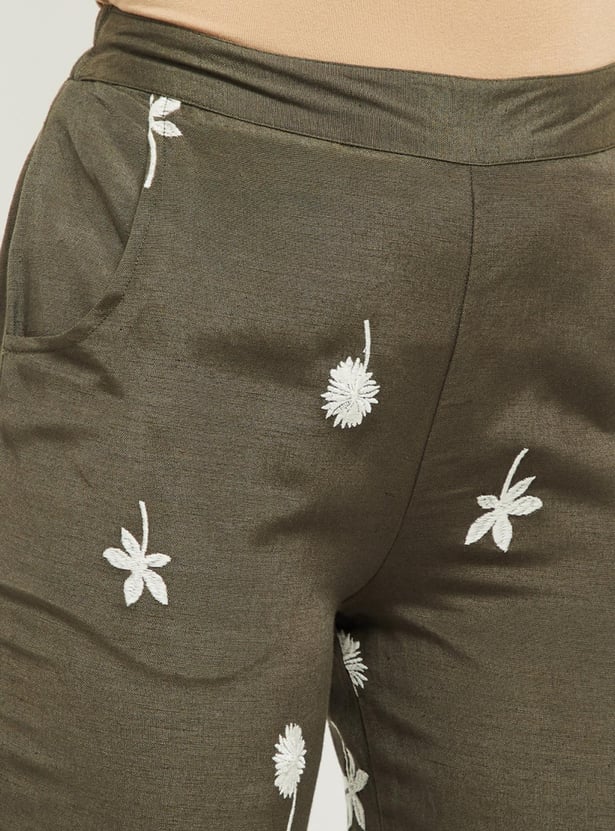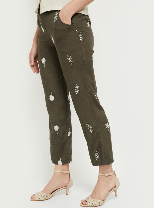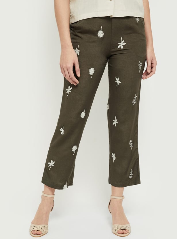Women Embroidered Elasticated Straight Pants