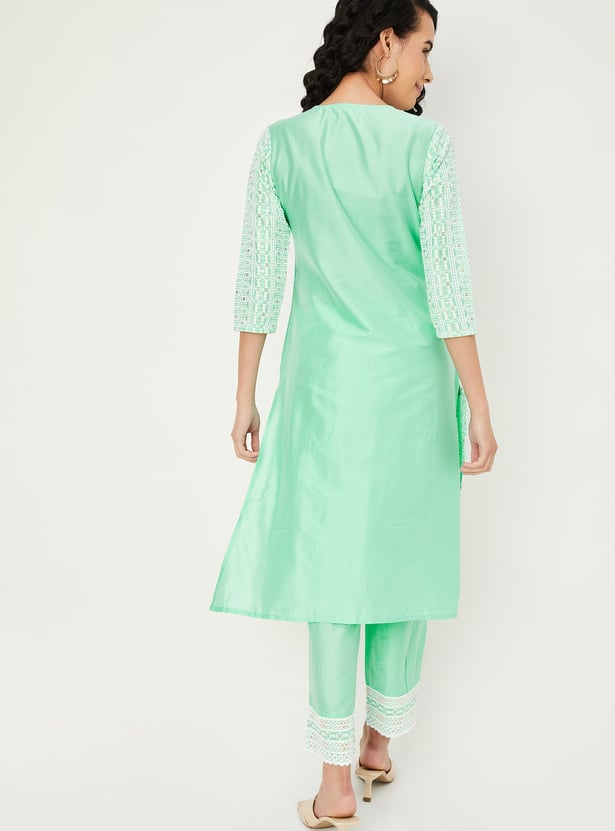 Women Embroidered Straight Kurta Set