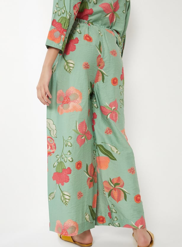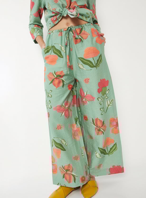 Breezy and elegant, these floral print palazzos feature a drawstring waist for a comfortable fit and practical pockets for everyday ease. The lightweight fabric adds a flowy, graceful touch, making them perfect for both casual and dressy occasions.