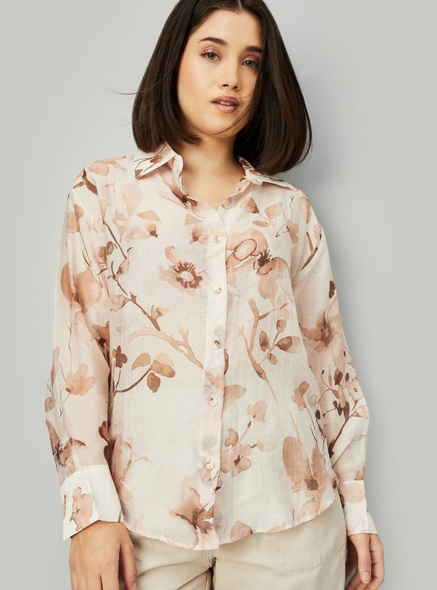 This floral printed shirt features a stylish collar, button placket, and full sleeves with button cuffs, offering a chic yet relaxed fit. The vibrant print adds a fun touch, making it perfect for casual outings or laid-back events. Model Size :