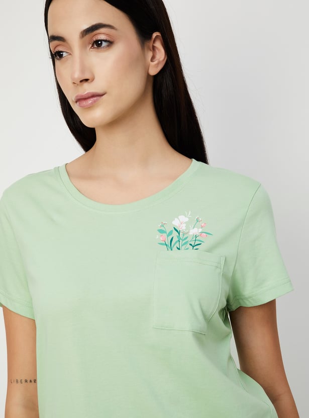 Relax and chill with this quirky printed sleepwear set. It includes a T-shirt with a round neck, half sleeves and a patch pocket along with a pair of matching all-over printed pyjamas with an elasticated waist and drawstring.
