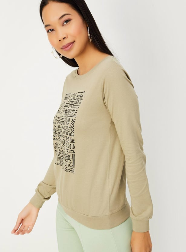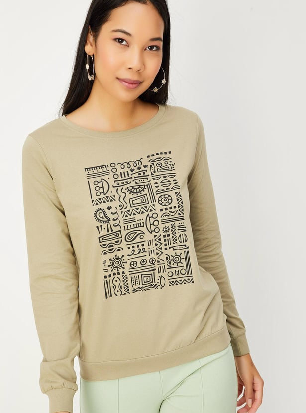 Add some style to your everyday wardrobe with this trendy t-shirt. Featuring a graphic print on the front, it also has a classic round neck, full sleeves, and ribbed hem. Pair it with jeans and sneakers to create a standout look.
