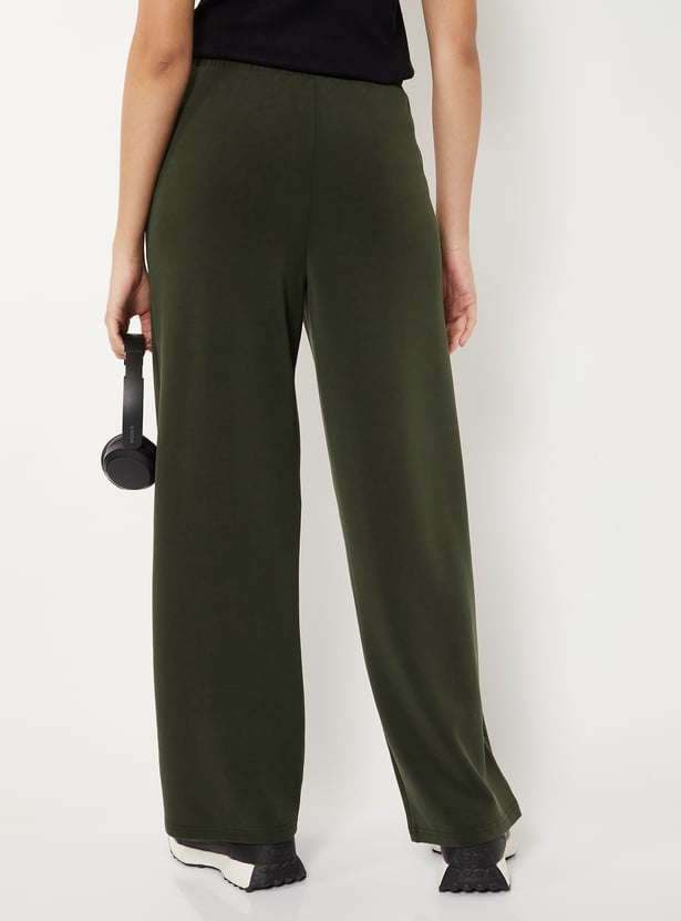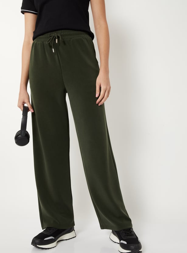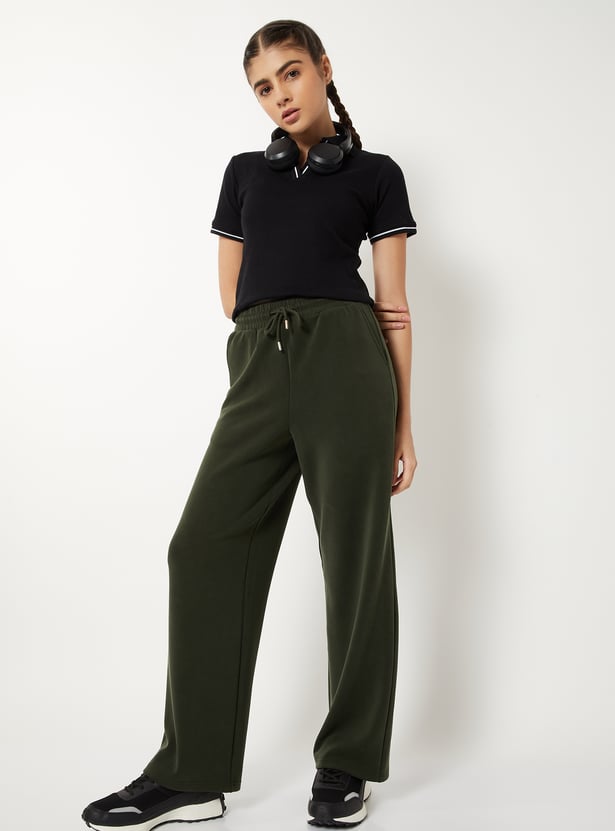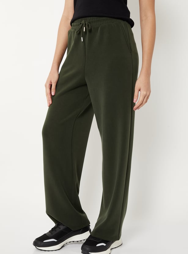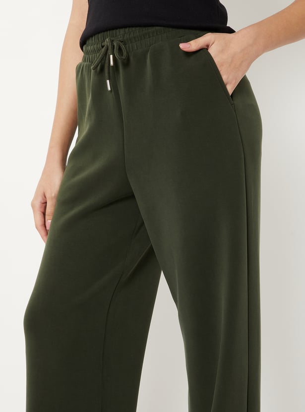 Experience ultimate comfort with these solid knit sports track pants, designed for a relaxed and flowy silhouette. Featuring a drawstring closure for an adjustable fit and practical pockets for added convenience, they combine ease with effortless style.