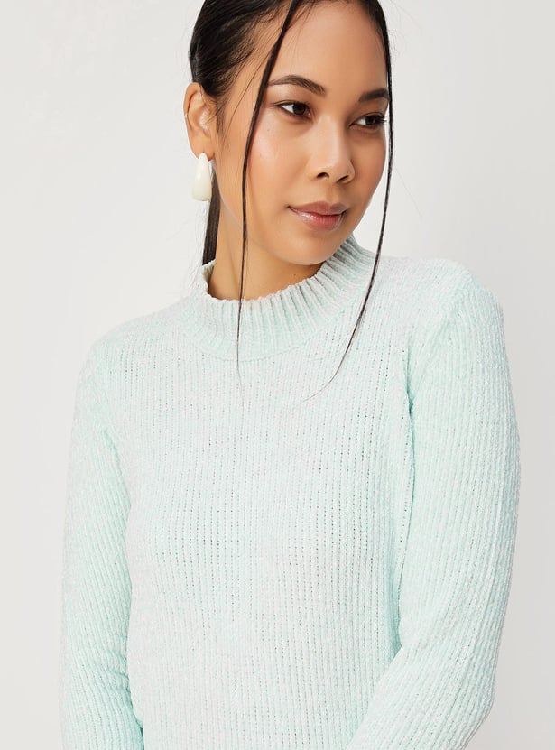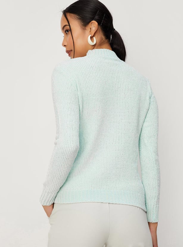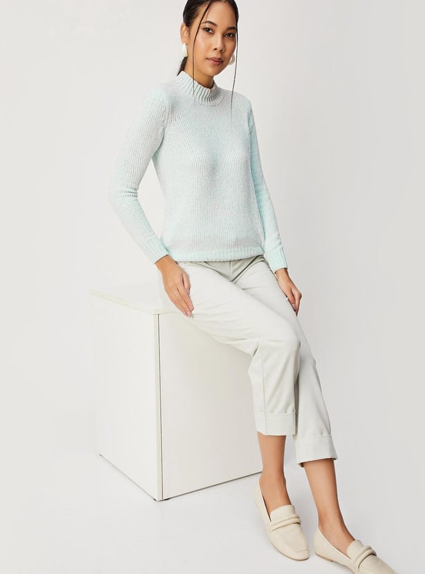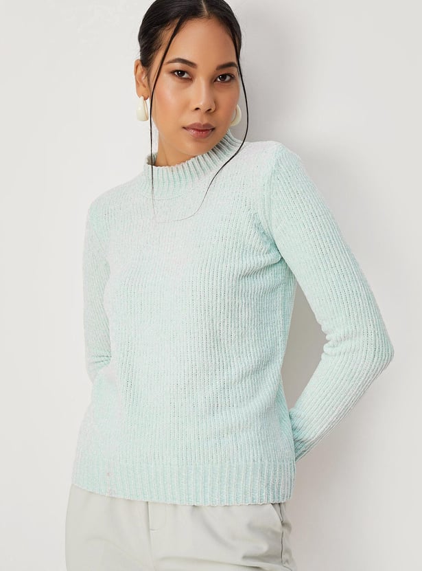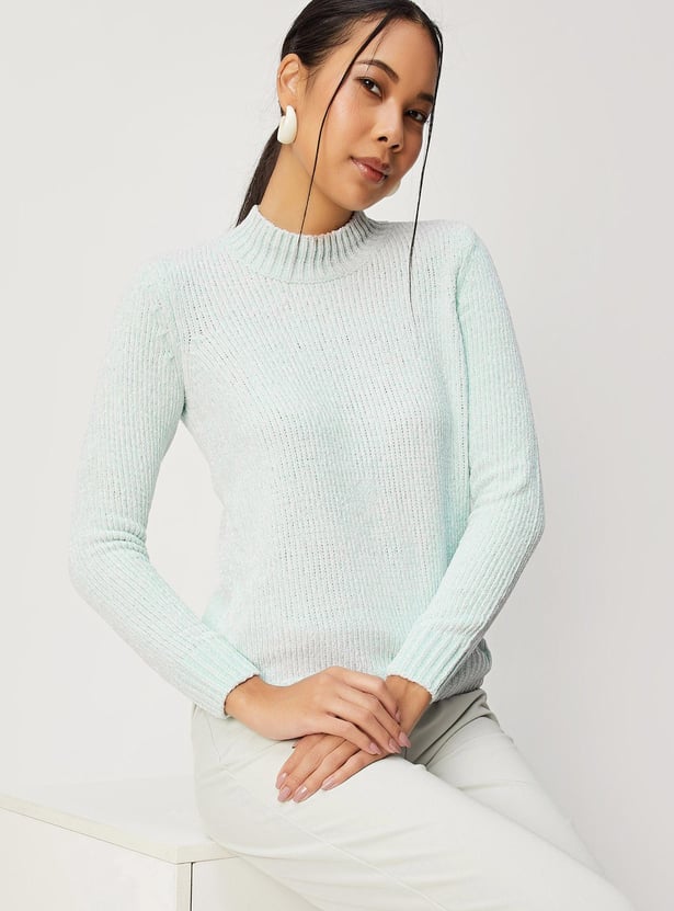This elegant jumper will keep you warm and fashionable throughout winter. It has a high neck, full sleeves, and a ribbed hem. Style this jumper with a pair of jeans and lace-up shoes for a cozy look.