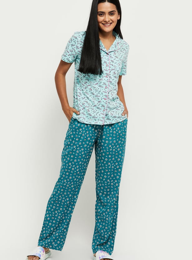 Women Printed Drawstring Waist Lounge Pyjamas