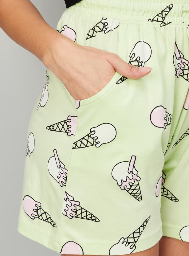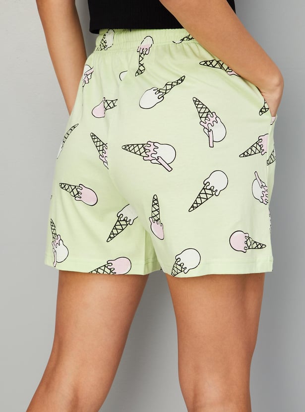 Lounge around with comfort in this pair of shorts. It features all-over prints and a drawstring waist.