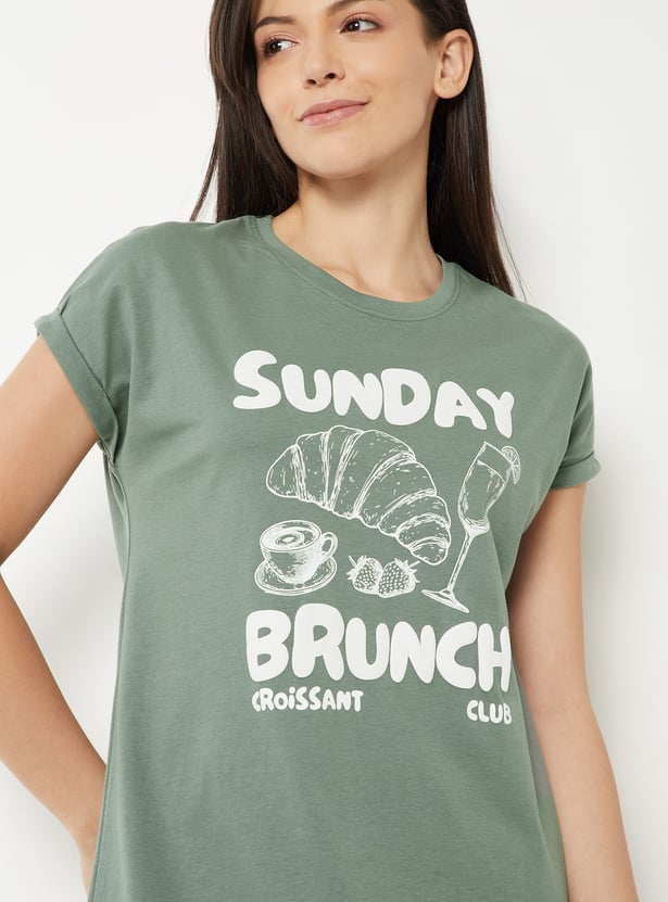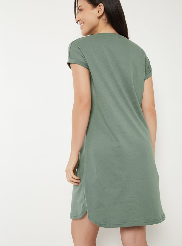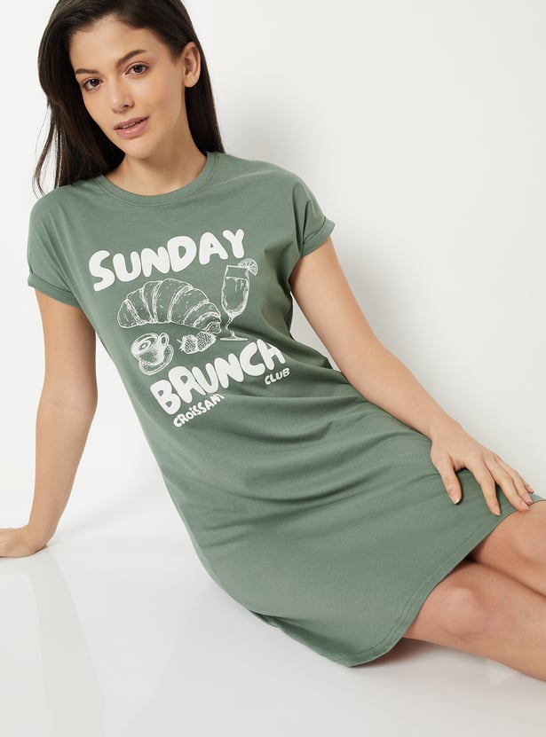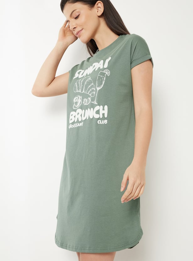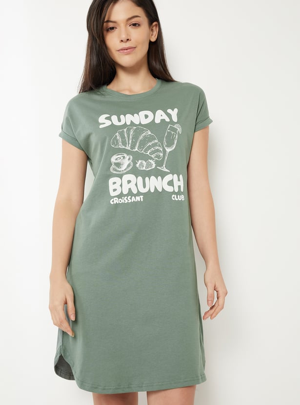 Keep it comfy and casual with this printed nightdress. Featuring a round neck and half sleeves, it offers a relaxed fit perfect for everyday wear.