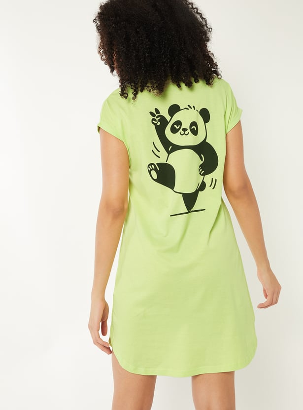 Casual and stylish, this printed chemise features a classic round neckline and comfortable half sleeves. The standout back print adds a unique twist, making it a versatile piece that blends everyday ease with a touch of personality.