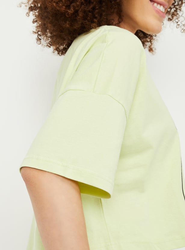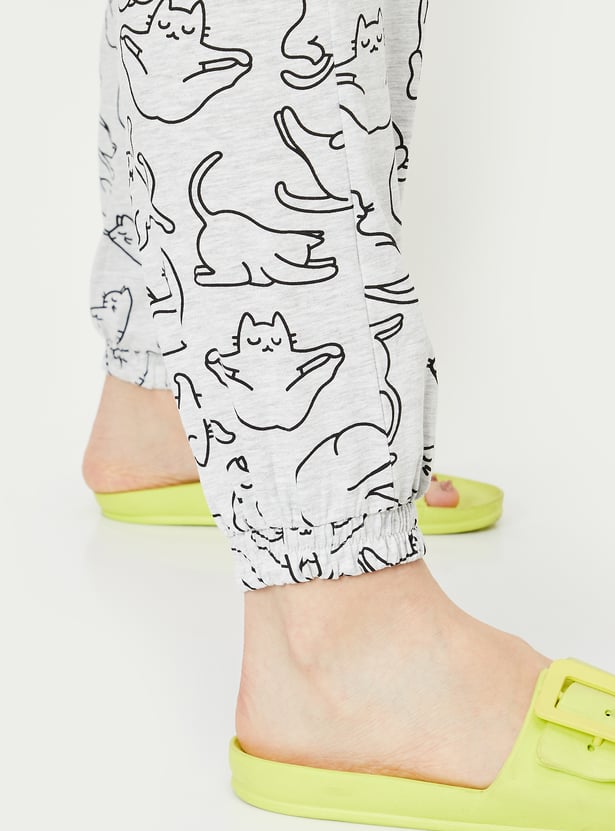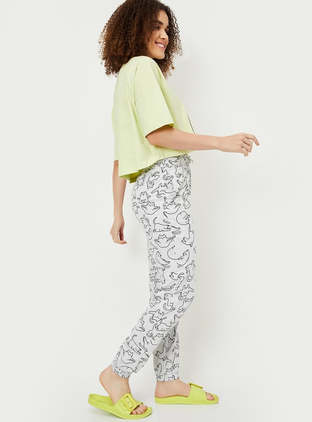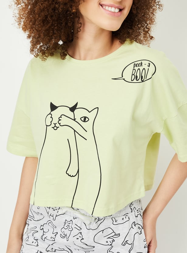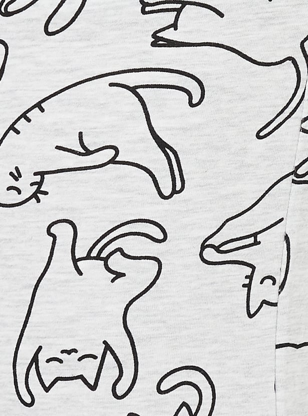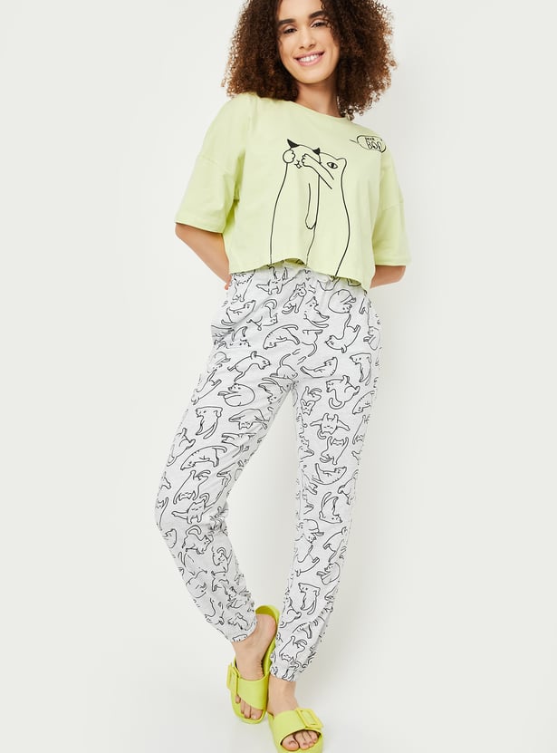 Chill in ultimate comfort with this printed set. Featuring a boxy-fit T-shirt with a round neck and half sleeves, paired with printed joggers that have pockets and an elasticated waist, it’s perfect for lounging in style.