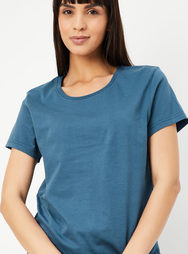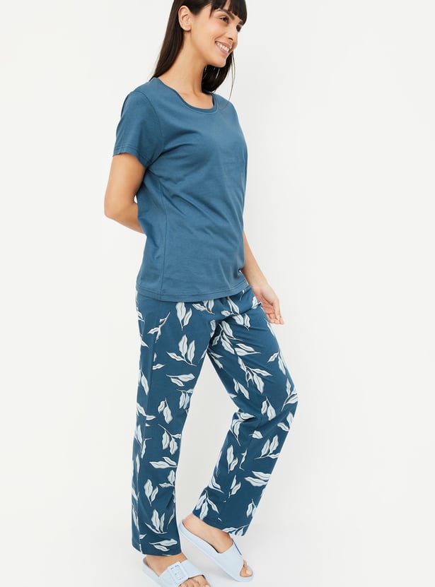 This printed PJ set is your go-to for cozy nights and lazy mornings. It features a soft round neck, half sleeves T-shirt paired with comfortable drawstring closure pyjamas—bringing together style and all-night comfort.