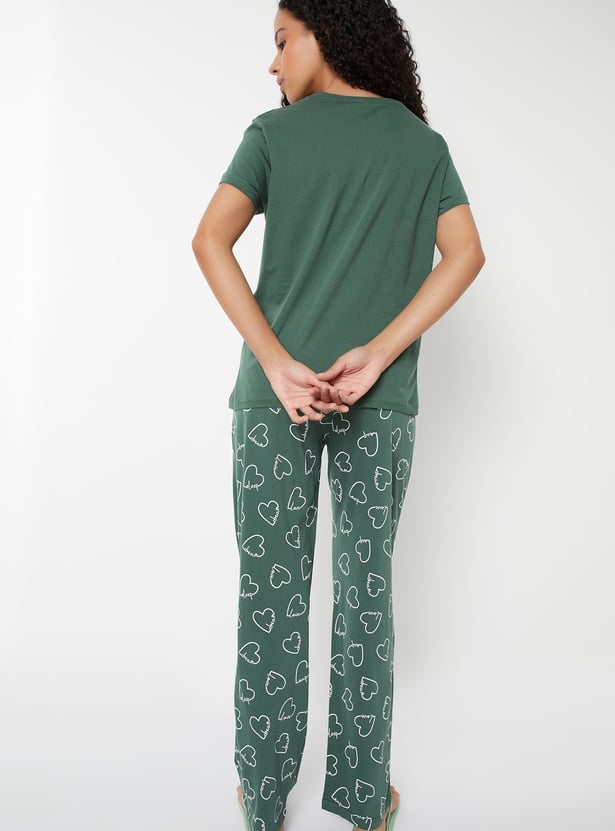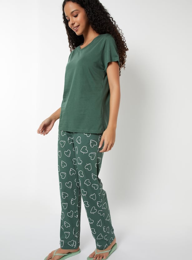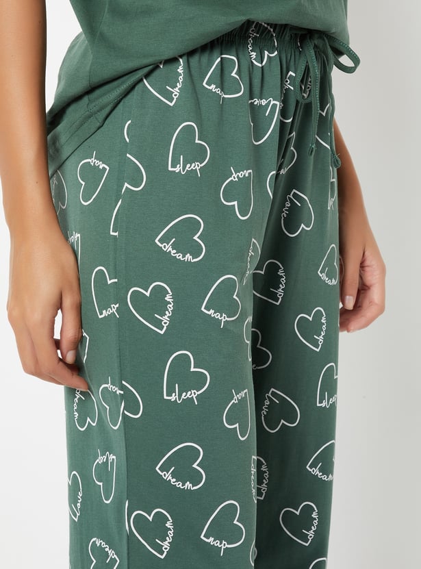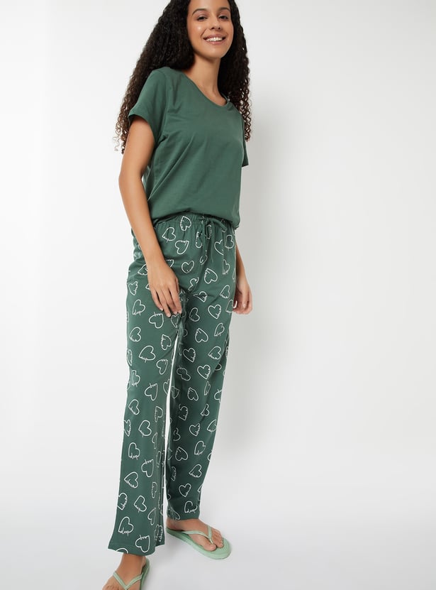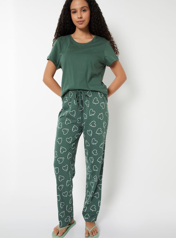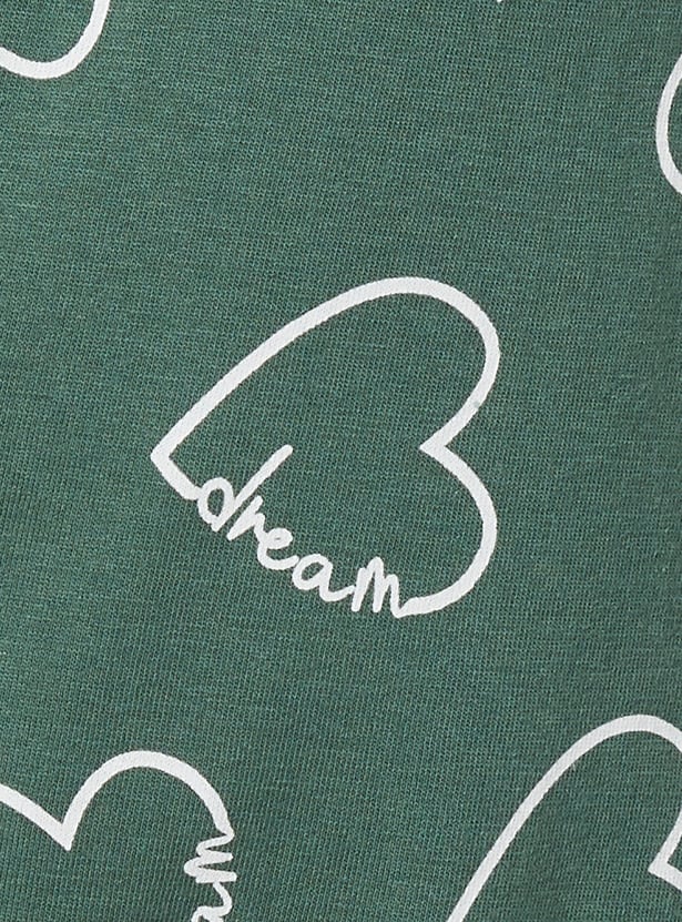 Unwind in style with this printed PJ set, featuring a T-shirt with a round neck and half sleeves, paired with printed pyjamas designed with a drawstring waist and handy pockets. Comfortable and playful, it’s perfect for lounging or bedtime.