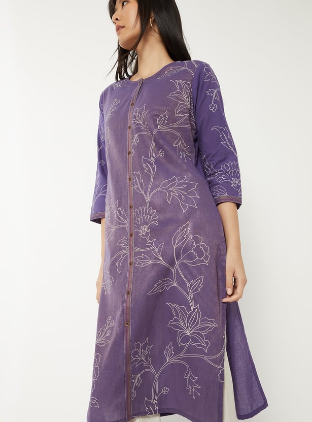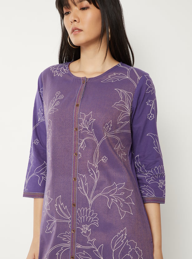 Add a touch of elegance to your everyday wear with this printed straight kurta. Featuring a round neck, 3/4th sleeves, and side slits for ease of movement, it blends comfort with chic design. A practical side pocket adds functionality, making it perfect for both casual outings and daily wear.