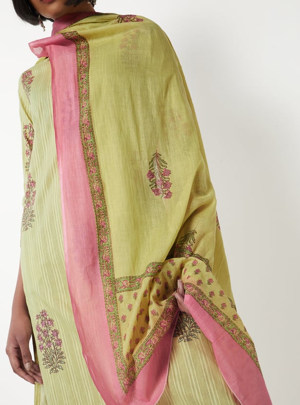 This printed straight kurta set is a timeless ensemble with elegant detailing. The kurta features a round neck, 3/4th sleeves, side slits, and a practical side pocket, all designed in a straight silhouette. Paired with straight pants that have an elasticated waist and a matching dupatta, the set offers both comfort and sophistication.