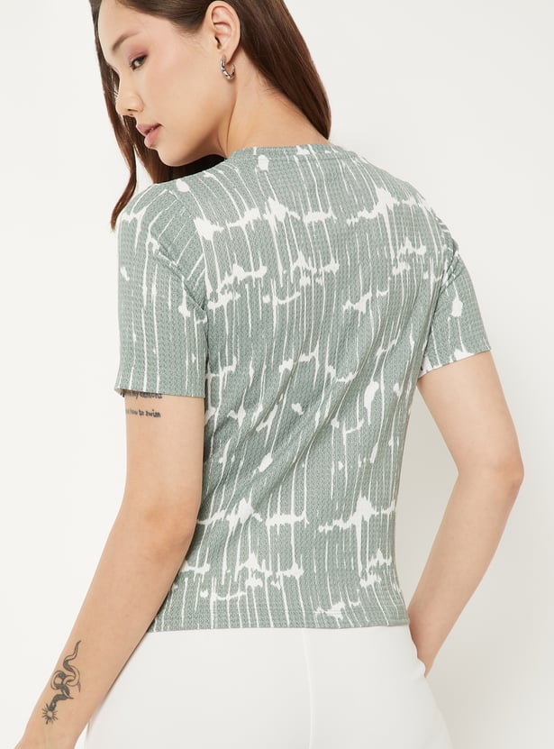 A comfy everyday t-shirt featuring a classic round neck and half sleeves with a vibrant printed design. Perfect for effortless, casual styling. Model Size :