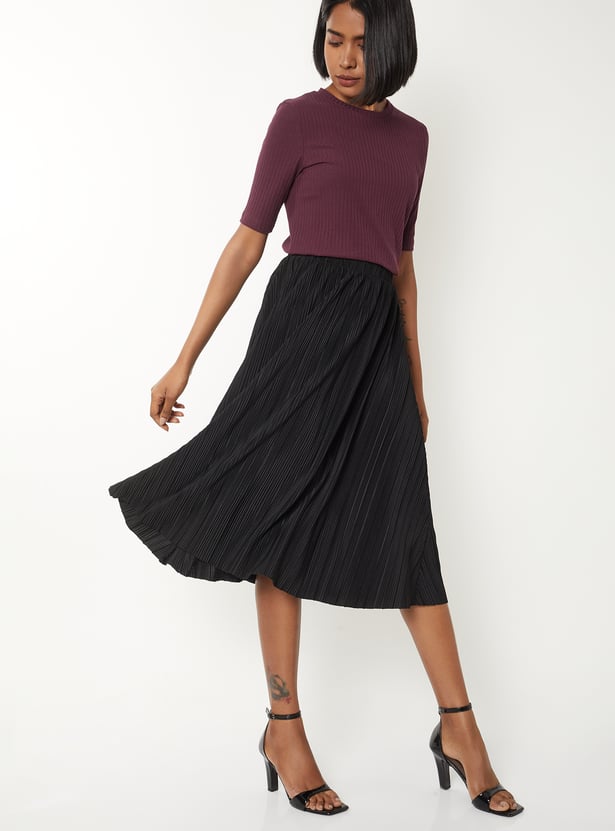 Upgrade your basics with this ribbed T-shirt for women, featuring a soft round neck and half sleeves for a flattering, easy fit. The ribbed texture adds subtle sophistication, making it perfect for layering or wearing solo—ideal for workdays, coffee dates, or relaxed weekends. Model Size :