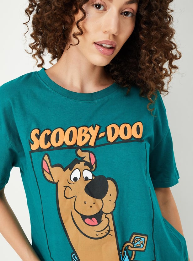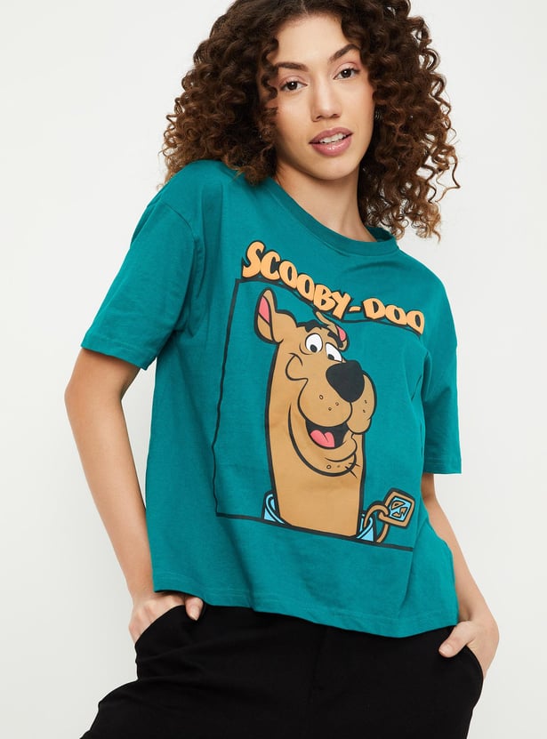 Add this Scooby-Doo printed T-shirt with a round neck and half sleeves to your casual wardrobe for a chic look.