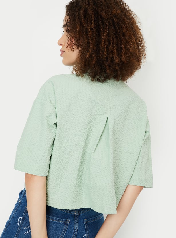Women Seersucker Cropped Shirt