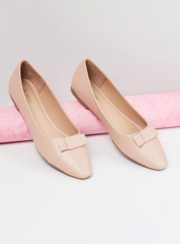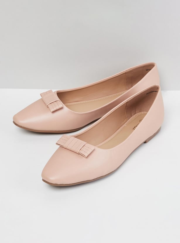 Crafted into solid surface with bow detailing and a comfortable footbed, this pair of ballerinas ensures that every step you take is filled with comfort and style.