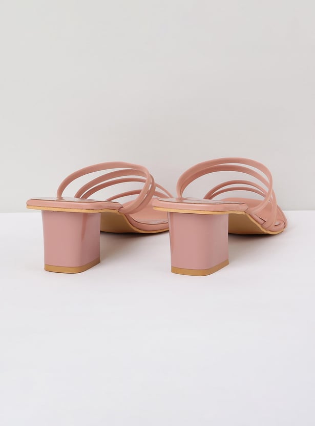 Give your look a classy twist with this pair of heels detailed with open-toe detailing, solid surface and an easy secured fastening.