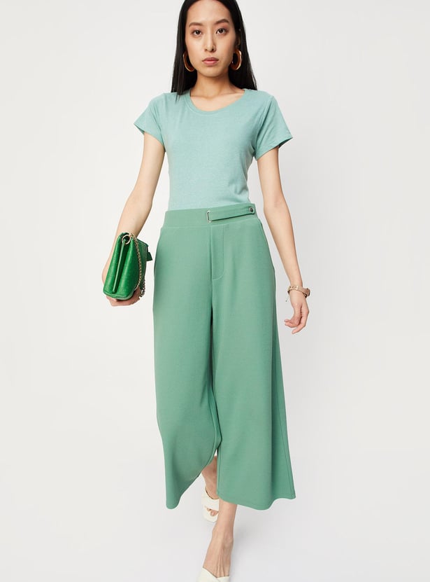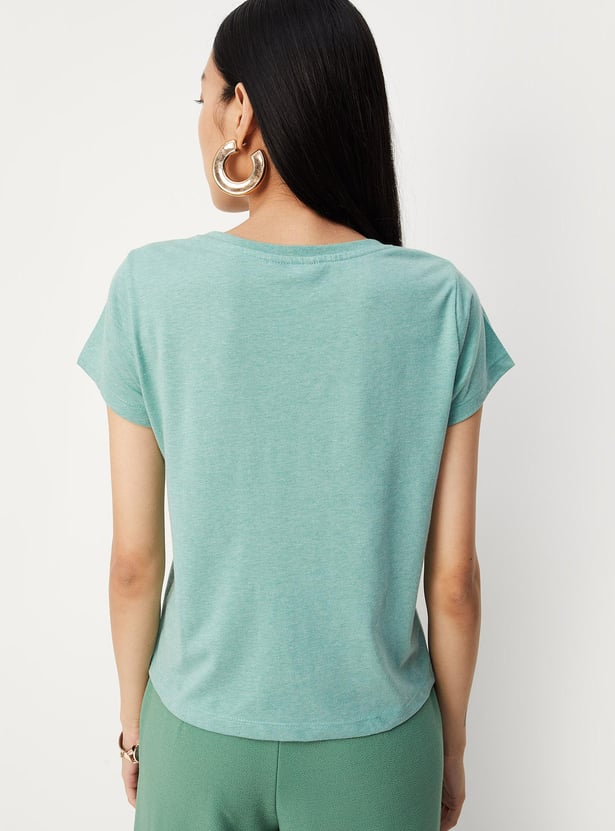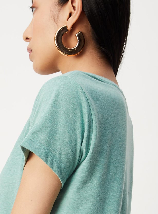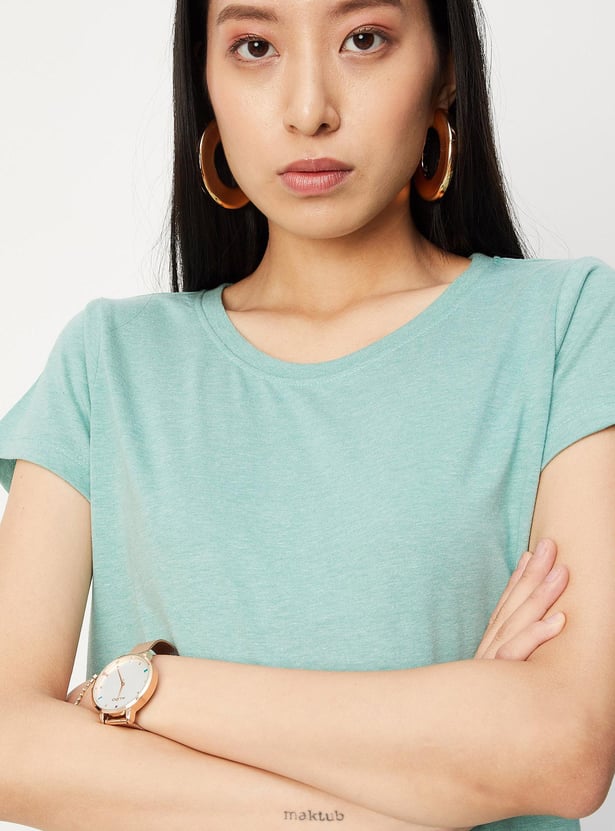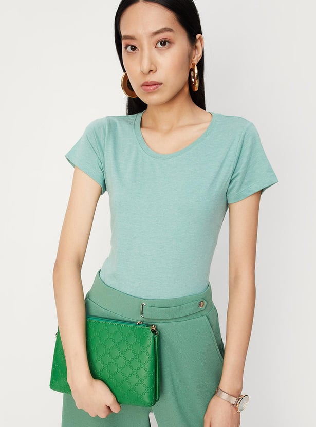 Versatile pieces like this solid T-shirt make a great foundation for your wardrobe. It features a round neckline and short sleeves. Pair this tee with trousers and pumps for an elevated look.
