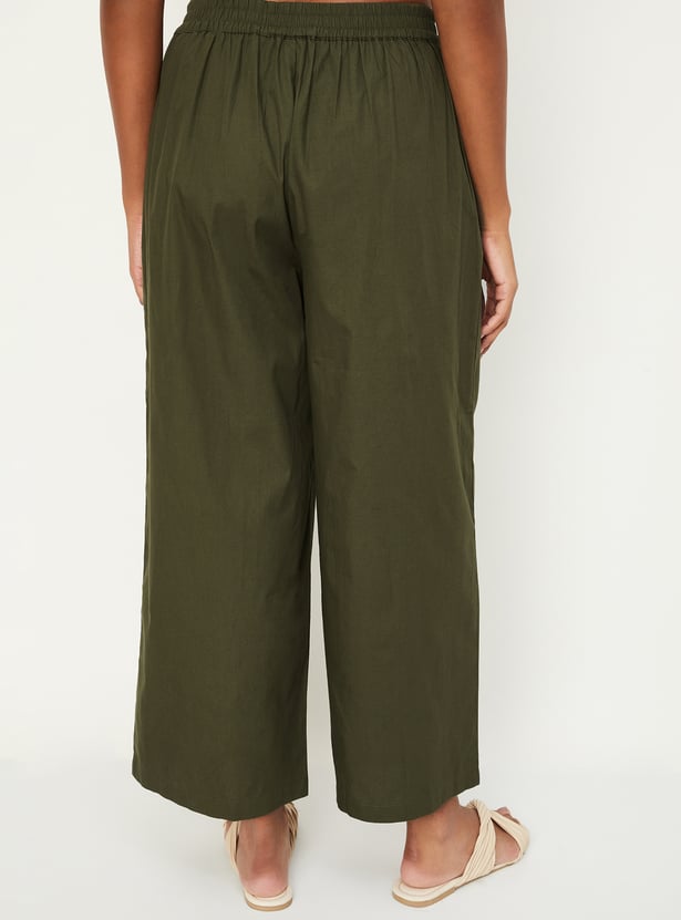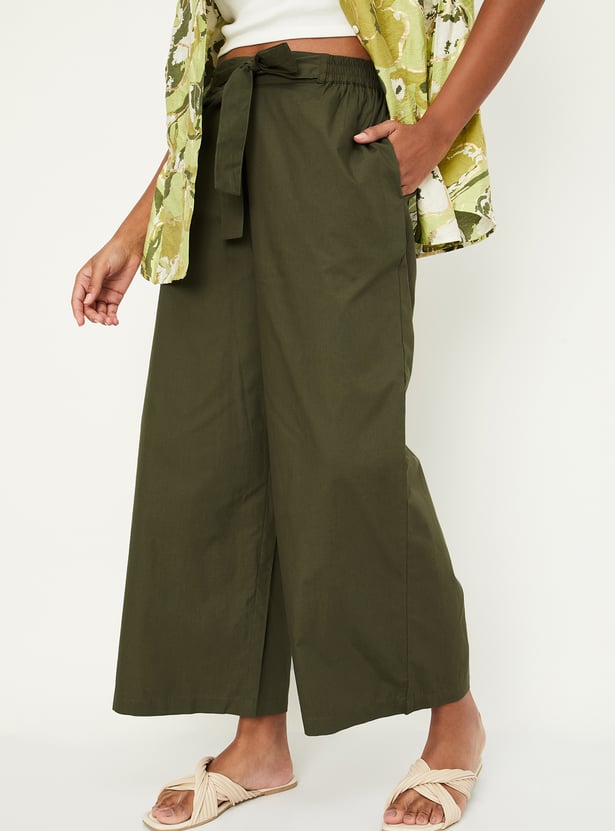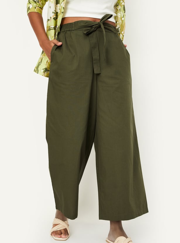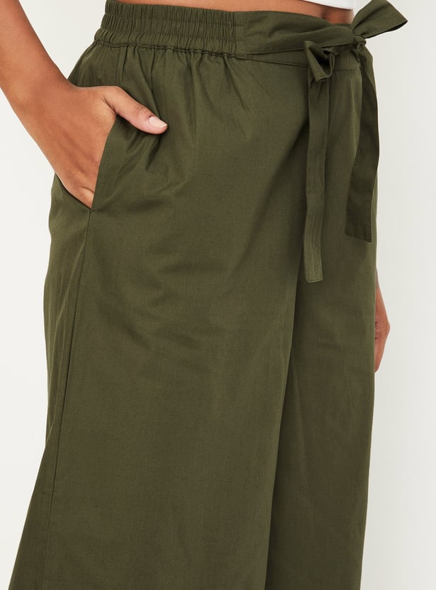 Women Solid Tie-Up Belt Palazzos