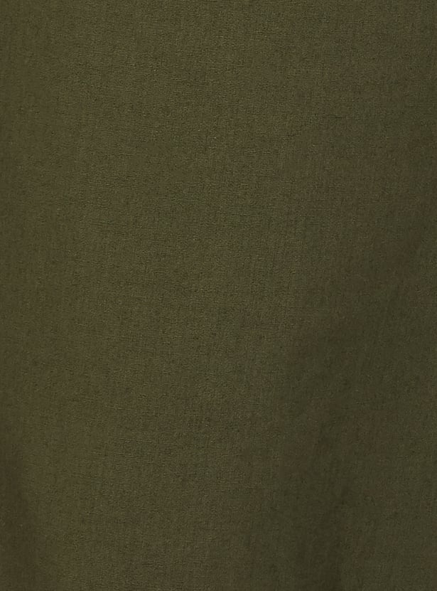 Flaunt your elegance with this pair of palazzos, featuring a tie-up belt, elasticized waist, pockets and a solid surface. The flowy silhouette ensures comfort while keeping you stylish all day long.