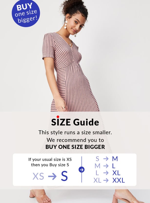 Make a style quotient with this maxi dress designed with a striped surface, a V neckline, and half sleeves. Pair it up with matching heel sandals and accessories to ensemble the complete look,
