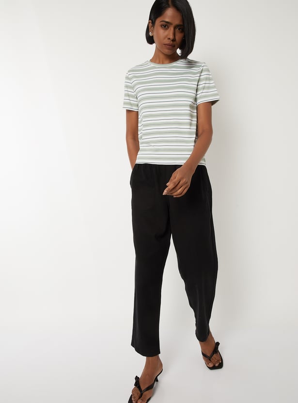 Stay casual and comfy with this striped casual T-shirt featuring a round neck, straight hem, and half sleeves for easy everyday wear. Model Size :