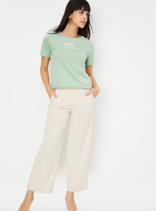 Women Text Applique T-shirt